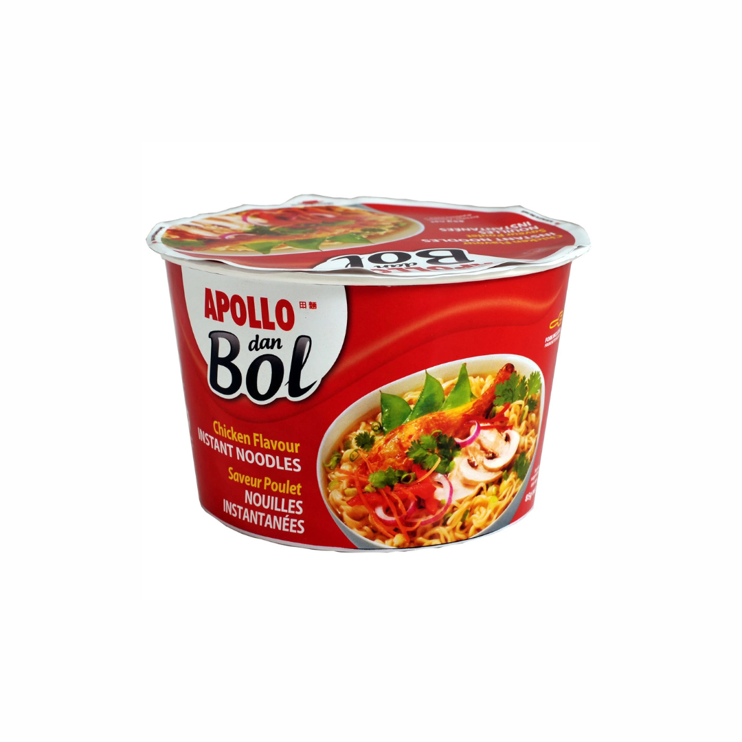 Format individuel snacking. Nouilles déshydratées, cuisson rapide à l'eau chaude et servir avec son bouillon. Recette originale mauricienne aromatisée au poulet.-