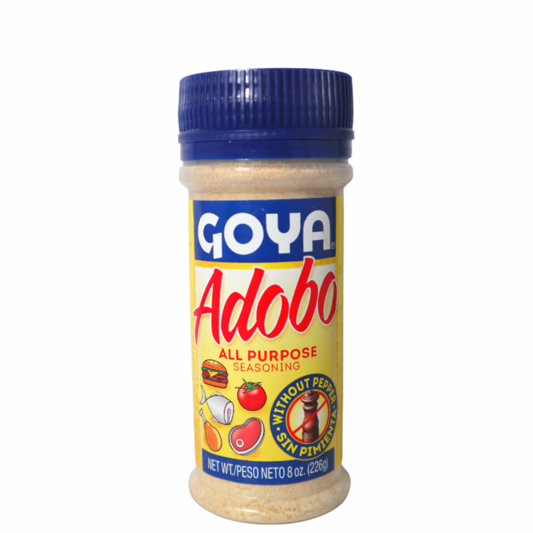 Goya Adobo assaisonnement sans poivre tout usage. C'est le mélange parfait d'épices latines, ce qui en fait un ingrédient idéal pour vos plats de légumes, de bœuf, de poulet ou de fruits de mer.