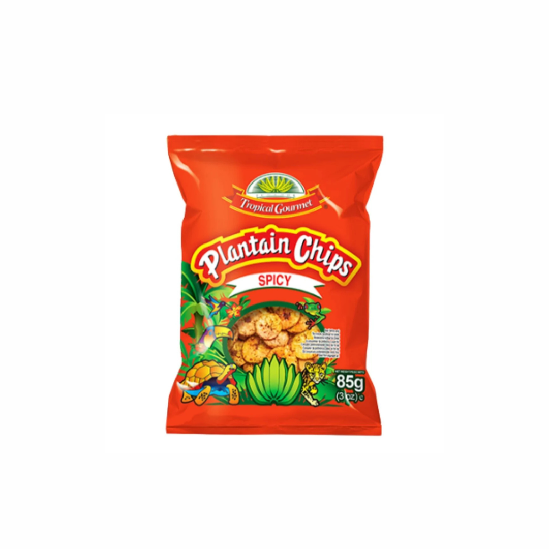 Vous cherchez un snack savoureux et sain à emporter? Choisissez Plantain Chips Spicy, chips de plantain séché épicé de 85 grammes!